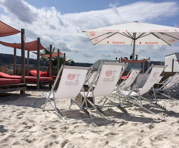 Dog er det steder, alle og enhver nemt kan finde - i modsætning til SkyBeach i Stuttgart. SkyBeach er en strandbar, der ligger på taget af Galeria Kaufhof på Königstrasse. Denne lille oase har både åbent om dagen og om aftenen. For at komme derop, skal man gå op af Kronenstrasse, for så at dreje til højre (når man kommer fra Königstrasse) - her er der to elevatorer, der kører til parkeringsdækkene i parkeringshuset. Tag elevatoren helt til tops - her er to glasdøre ud til parkeringspladsen. Gå ud af dem og drej venstre om bygningen - så ligger det lille paradis her. Når mørket falder på, og Stuttgarts natteliv bevæger på sig, kommer flere og flere til SkyBeach, hvor der også er musik og kulørte lyskæder - på den hyggelige beachparty måde.
